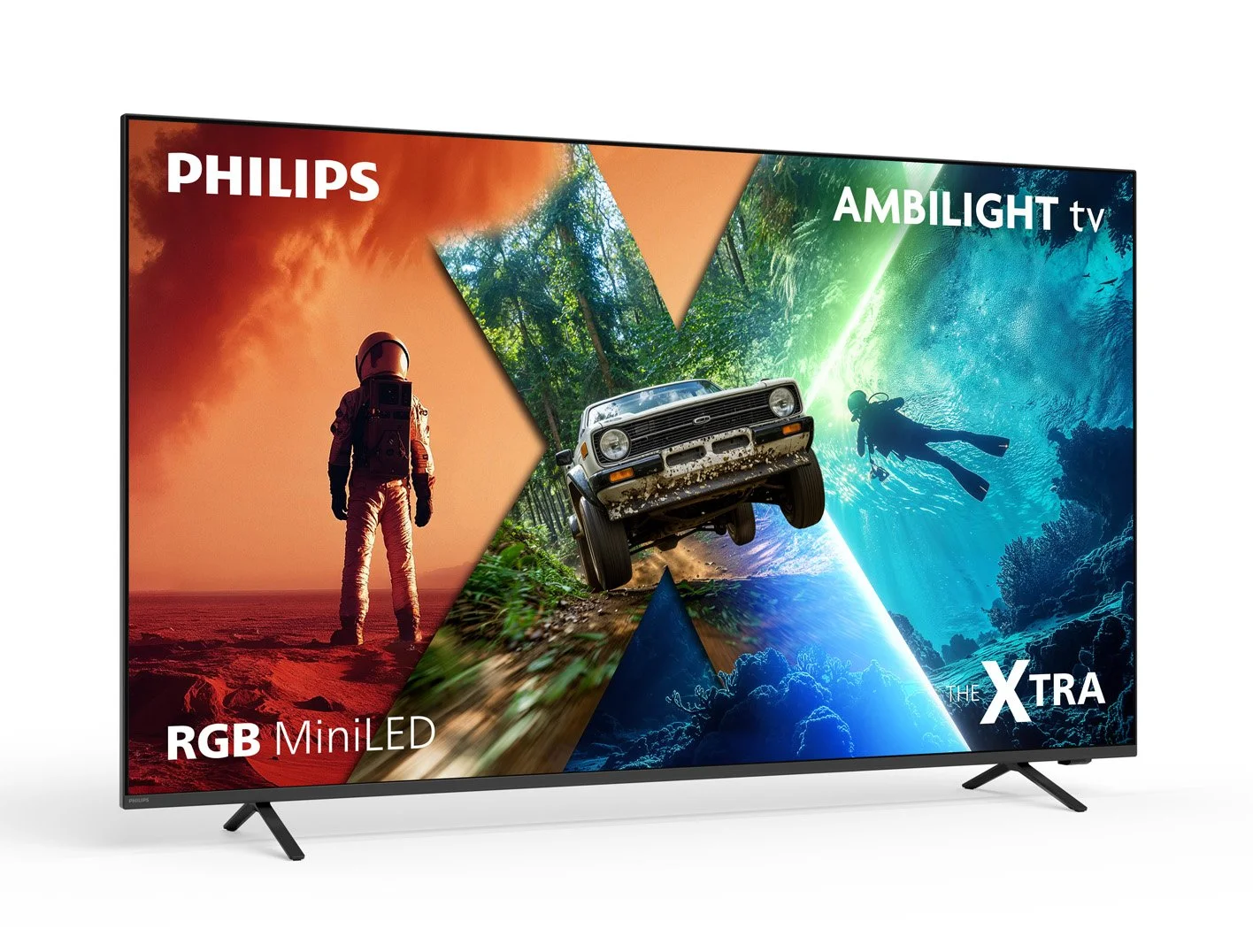 MLED981- Philips TV’s first high-performance, RGB Mini-LED model will be launched in October in an 85” screen size and featuring 10th Gen P5 AI processing, three-sided Ambilight, plus an immersive 70W 4.1 sound system and Dolby Vision 2 MAX compatibility.